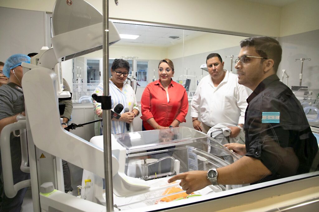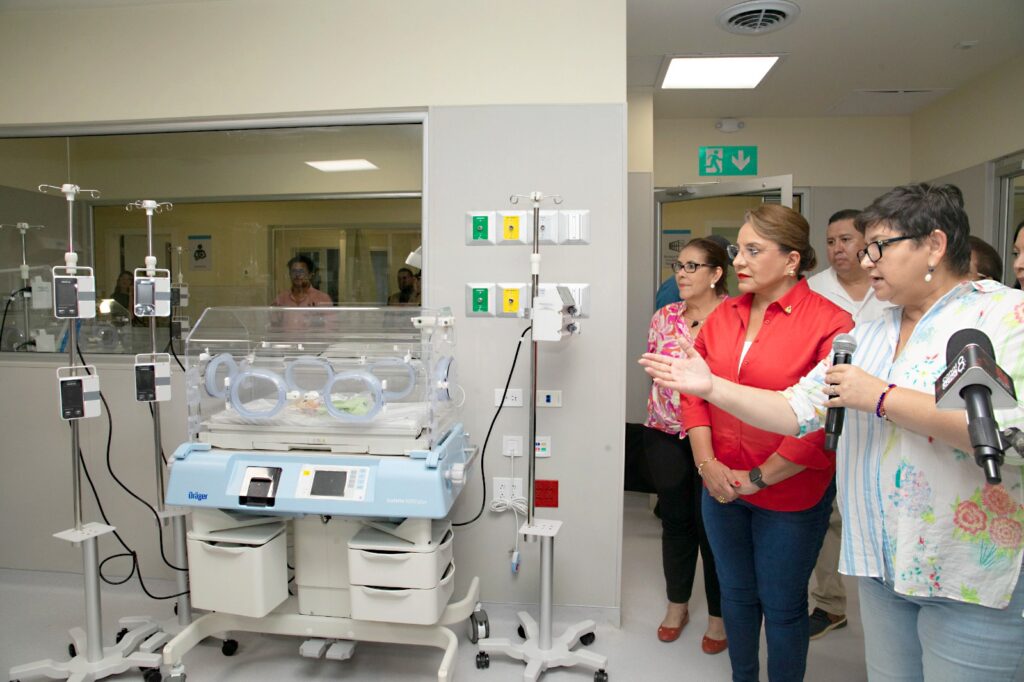 Con una inversión total de más de 91 millones de lempiras y con el objetivo de fortalecer la atención materno infantil la presidenta Xiomara Castro inauguró hoy una moderna Sala de Unidad de Cuidados Intensivos Neonatales en el hospital General San Francisco en Juticalpa, Olancho.