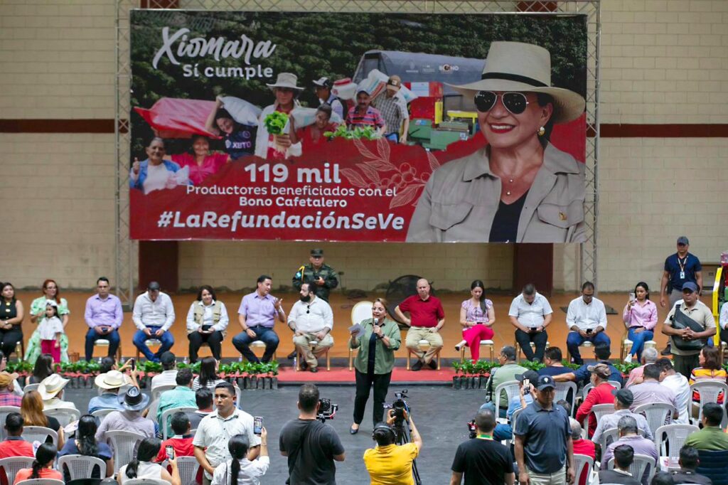 “Con esto que estamos haciendo hoy entregándoles, no sólamente la mata de café, fertilizantes, estamos garantizando que no solo el alimento estará en las mesas de los hondureños, sino también la taza de café”, afirmó la mandataria.