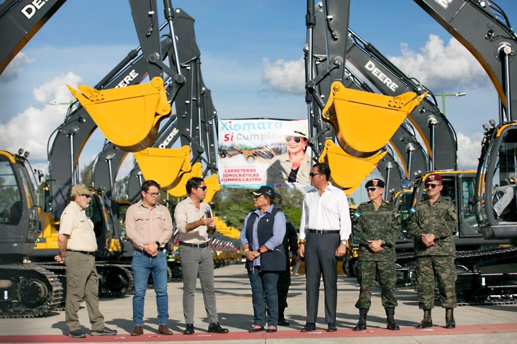 La mandataria Xiomara Castro entregó hoy a la Secretaría de Infraestructura y Transporte (SIT) una flota de maquinaria pesada cuya finalidad es recuperar lo público que dejó de serlo hace tres décadas cuando gobiernos del bipartidismo privatizaron los bienes del Estado.