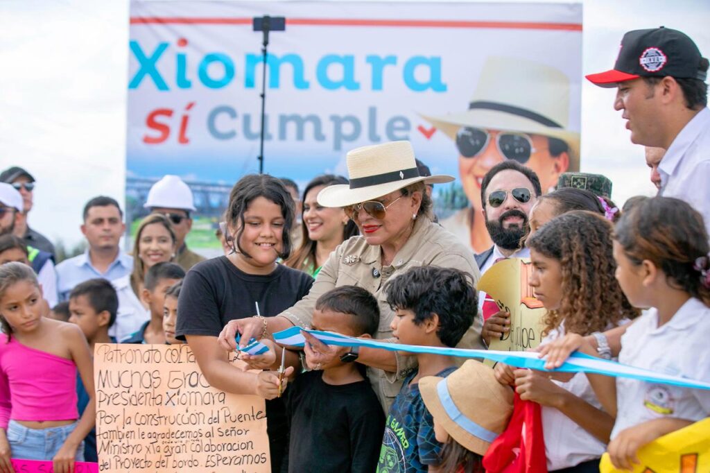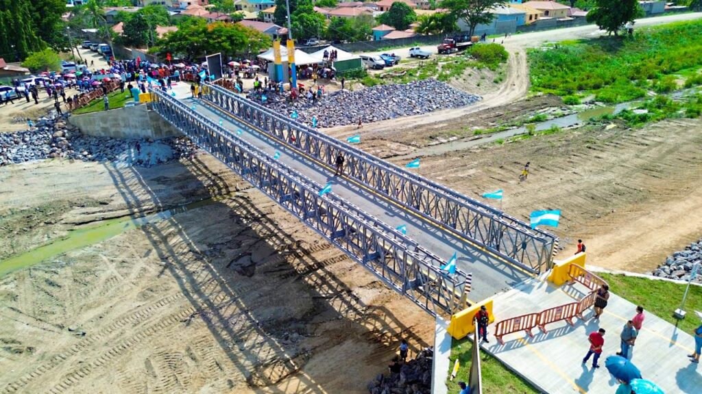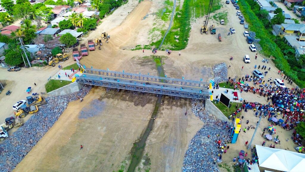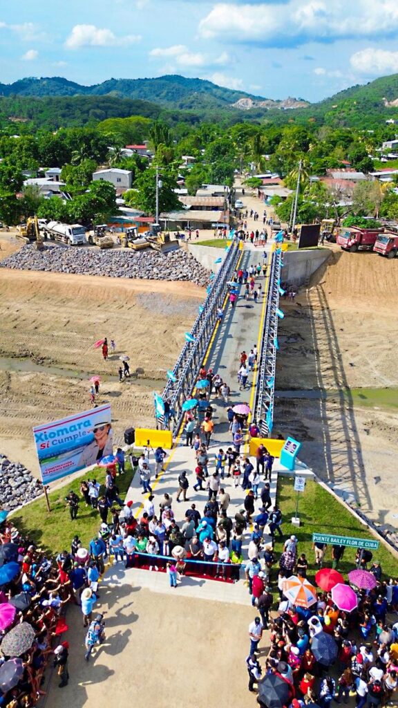 La primera mujer presidenta del país Xiomara Castro entregó hoy el Puente Bailey a unos 75 mil pobladores de las colonias Felipe Zelaya y Flor de Cuba, de San Pedro Sula, Cortés.