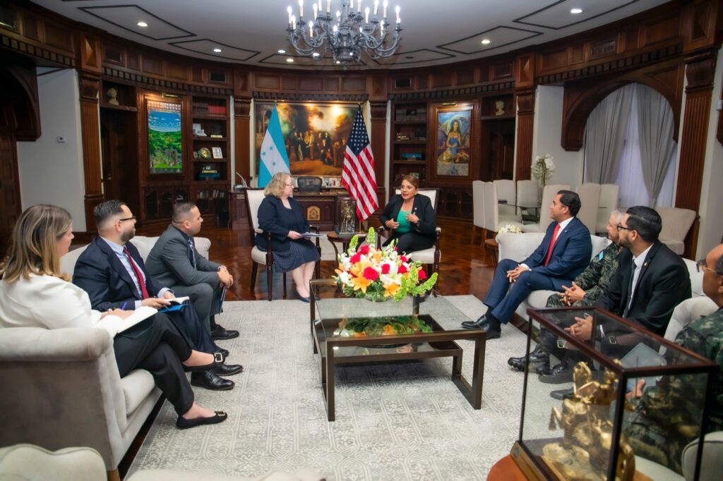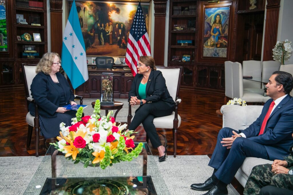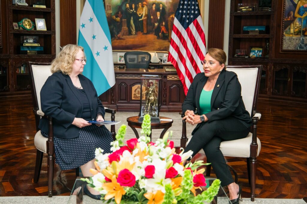 La presidenta Xiomara Castro se reunió esta tarde con la Encargada de Negocios de la embajada de Estados Unidos en nuestro país Colleen Hoey con quien abordó temas de narcotráfico, migración y cooperación mutua.